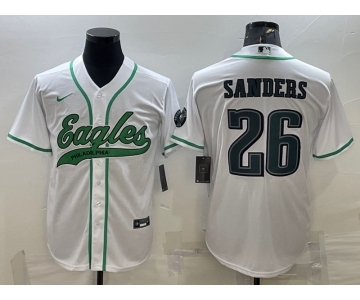Men's Philadelphia Eagles #26 Miles Sanders White With Patch Cool Base Stitched Baseball Jersey