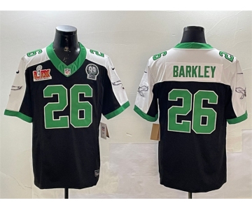 Men's Philadelphia Eagles #26 Saquon Barkley Black 2025 Super Bowl LIX Patch And Jerome Brown Patch F.U.S.E. Alternate Stitched Football Jersey