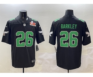 Men's Philadelphia Eagles #26 Saquon Barkley Black 2025 Super Bowl LIX Patch Throwback Vapor Untouchable Limited Football Stitched Jersey