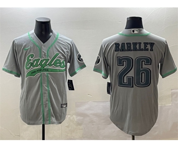 Men's Philadelphia Eagles #26 Saquon Barkley Gray Cool Base Stitched Baseball Jersey