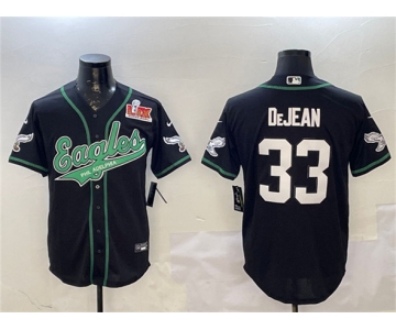 Men's Philadelphia Eagles #33 Cooper DeJean Black 2025 Super Bowl LIX Patch Cool Base Stitched Baseball Jersey