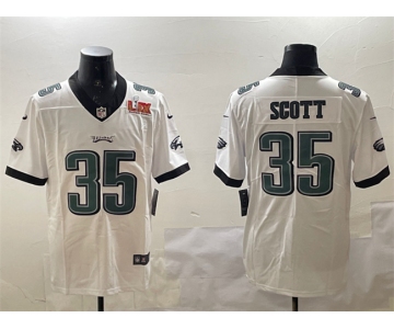 Men's Philadelphia Eagles #35 Boston Scott White 2025 Super Bowl LIX Patch Vapor Untouchable Limited Stitched Football Jersey