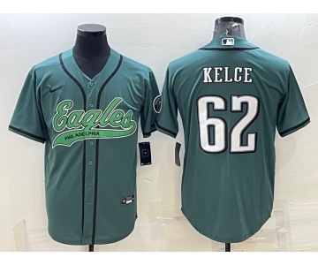 Men's Philadelphia Eagles #62 Jason Kelce Green With Patch Cool Base Stitched Baseball Jersey