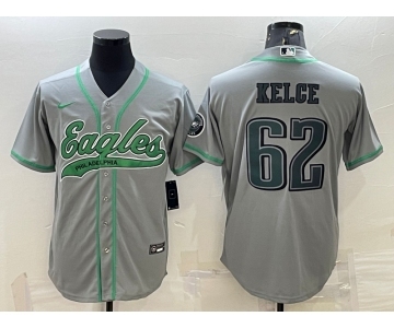 Men's Philadelphia Eagles #62 Jason Kelce Grey With Patch Cool Base Stitched Baseball Jersey