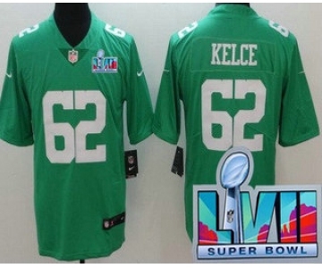 Men's Philadelphia Eagles #62 Jason Kelce Limited Green Rush Super Bowl LVII Vapor Jersey