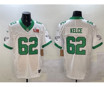 Men's Philadelphia Eagles #62 Jason Kelce White 2025 Super Bowl LIX Patch F.U.S.E. Vapor Untouchable Limited Stitched Football Jersey