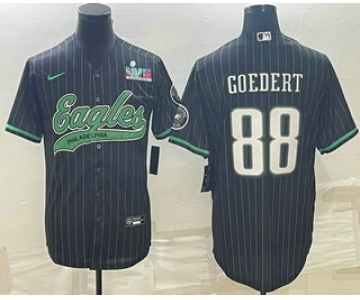 Men's Philadelphia Eagles #88 Dallas Goedert Black Pinstripe With Super Bowl LVII Patch Cool Base Stitched Baseball Jersey