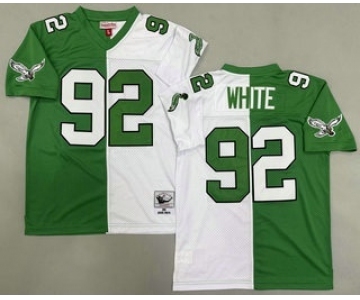 Men's Philadelphia Eagles #92 Reggie White Green White Split 1990 Throwback Jersey