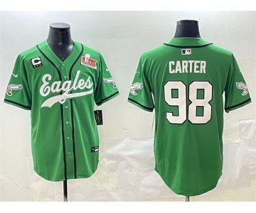 Men's Philadelphia Eagles #98 Jalen Carter Green 2025 Super Bowl LIX And 3-Star C Patch Stitched Baseball Jersey