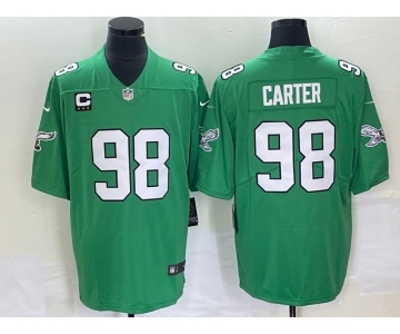 Men's Philadelphia Eagles #98 Jalen Carter Green C Patch 2023 Vapor Limited Throwback Jersey