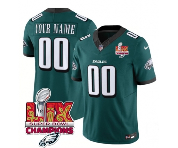 Men's Philadelphia Eagles Active Player Custom Green 2025 Eagles Logo Super Bowl LIX Patch New F.U.S.E. Vapor Limited Football Stitched Jersey
