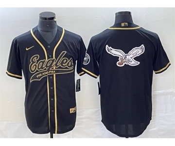 Men's Philadelphia Eagles Black Gold Team Big Logo Cool Base Stitched Baseball Jersey