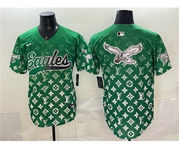 Men's Philadelphia Eagles Team Big Logo Green With Patch Limited Stitched Baseball Jerseys