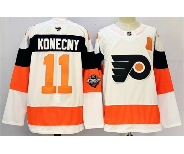 Men's Philadelphia Flyers #11 Travis Konecny White 2024-25 With A Patch Stitched Jersey