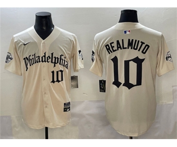 Men's Philadelphia Phillies #10 J.T. Realmuto Cream Gothic Vapor Limited Stitched Jersey