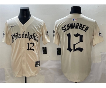 Men's Philadelphia Phillies #12 Kyle Schwarber Cream Gothic Vapor Limited Stitched Jersey