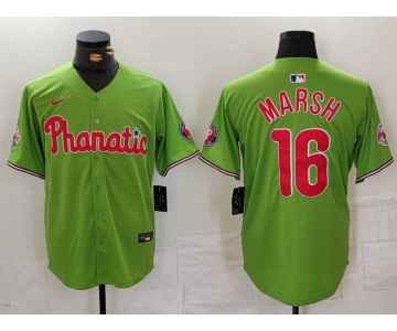 Men's Philadelphia Phillies #16 Brandon Marsh Green With Patch Stitched Cool Base Nike Jersey