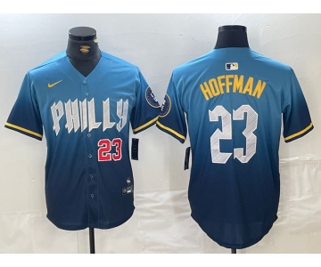 Men's Philadelphia Phillies #23 Jeff Hoffman Blue Number 2024 City Connect Limited Stitched Jersey