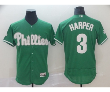 Men's Philadelphia Phillies #3 Bryce Harper Majestic Green Home Flexbase Authentic Collection Player Jersey