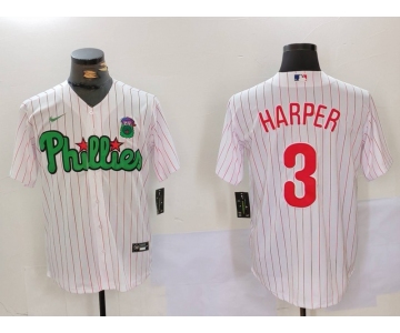 Men's Philadelphia Phillies #3 Bryce Harper White Green Cool Base Stitched Jersey