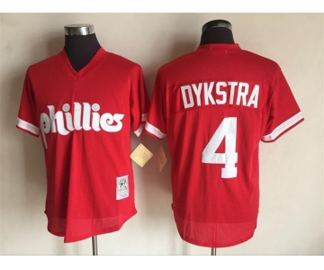 Men's Philadelphia Phillies #4 Lenny Dykstra Mitchell and Ness Red 1991 Throwback Stitched MLB Jersey