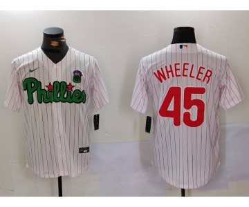 Men's Philadelphia Phillies #45 Zack Wheeler White Green Cool Base Stitched Jersey