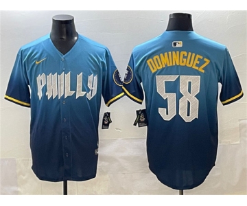 Men's Philadelphia Phillies #58 Seranthony Domínguez Blue 2024 City Connect Limited Stitched Jersey