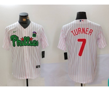 Men's Philadelphia Phillies #7 Trea Turner White Green Cool Base Stitched Jersey