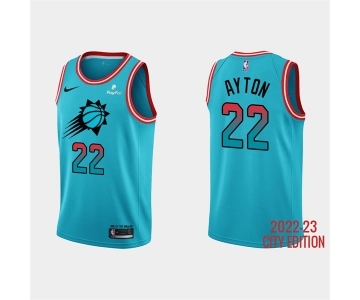 Men's Phoenix Suns #22 Deandre Ayton 2022-23 Blue City Edition Stitched Basketball Jersey