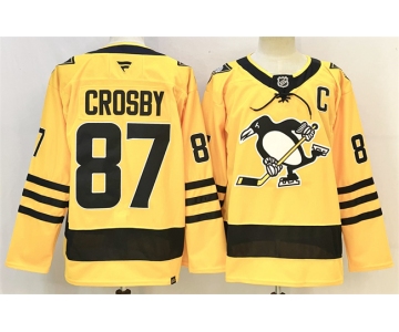 Men's Pittsburgh Penguins #87 Sidney Crosby Gold 2025-26 With C Patch Alternate Stitched Hockey Jersey