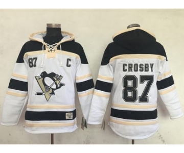 Men's Pittsburgh Penguins #87 Sidney Crosby White Sawyer Hooded Sweatshirt Stitched NHL Jersey