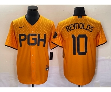 Men's Pittsburgh Pirates #10 Bryan Reynolds Gold 2023 City Connect Stitched Jersey 1