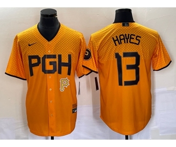 Men's Pittsburgh Pirates #13 KeBryan Hayes Gold 2023 City Connect Stitched Jersey