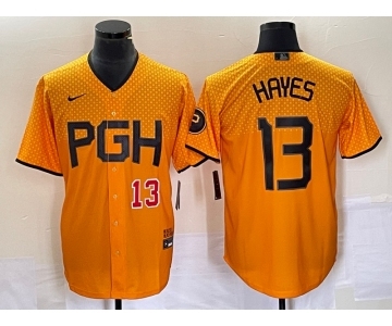 Men's Pittsburgh Pirates #13 KeBryan Hayes Number Gold 2023 City Connect Stitched Jersey