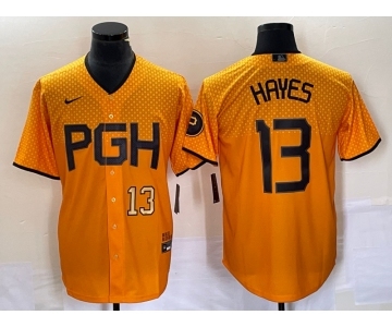 Men's Pittsburgh Pirates #13 KeBryan Hayes Number Gold 2023 City Connect Stitched Jersey2
