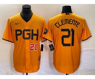 Men's Pittsburgh Pirates #21 Roberto Clemente Gold 2023 City Connect Stitched Jersey 1