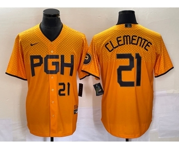 Your Position: Home>NIKE MLB Jerseys>Pittsburgh Pirates>Men>Men's Pittsburgh Pirates #21 Roberto Clemente Number Gold 2023 City Connect Stitched Jersey1