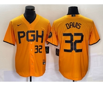 Men's Pittsburgh Pirates #32 Henry Davis Number Yellow 2023 City Connect Stitched Jersey2