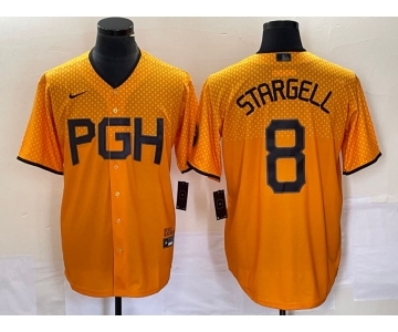 Men's Pittsburgh Pirates #8 Willie Stargell Number Gold 2023 City Connect Stitched Jersey