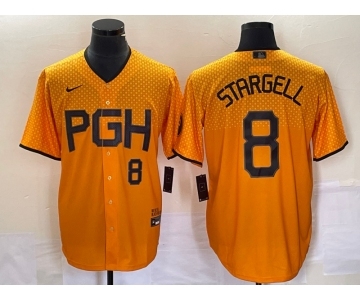 Men's Pittsburgh Pirates #8 Willie Stargell Number Gold 2023 City Connect Stitched Jersey 1