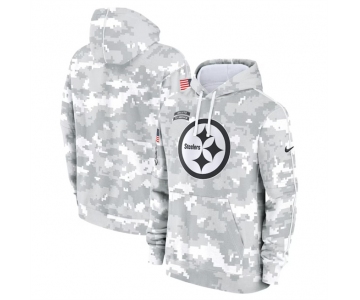 Your Position: Home>NIKE NFL Jerseys>Nike Pittsburgh Steelers>NFL pullover hooded sweatshirt >Men>Men's Pittsburgh Steelers 2024 Arctic Camo Salute To Service Club Fleece Pullover Hoodie