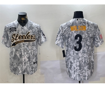 Men's Pittsburgh Steelers #3 Russell Wilson 2024 Arctic Camo Salute To Service Stitched Baseball Jersey