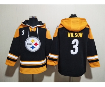 Men's Pittsburgh Steelers #3 Russell Wilson Black Ageless Must-Have Lace-Up Pullover Hoodie