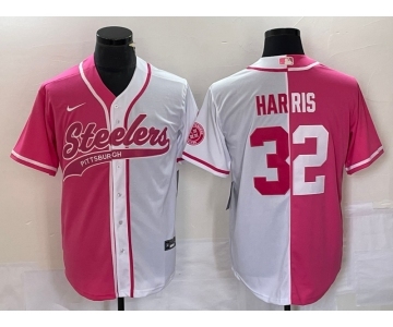 Men's Pittsburgh Steelers #32 Franco Harris Pink White Two Tone With Patch Cool Base Stitched Baseball Jersey