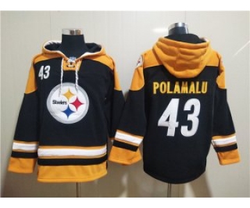 Your Position: Home>NIKE NFL Jerseys>Nike Pittsburgh Steelers>NFL pullover hooded sweatshirt >Men>Men's Pittsburgh Steelers #43 Troy Polamalu Black Ageless Must-Have Lace-Up Pullover Hoodie