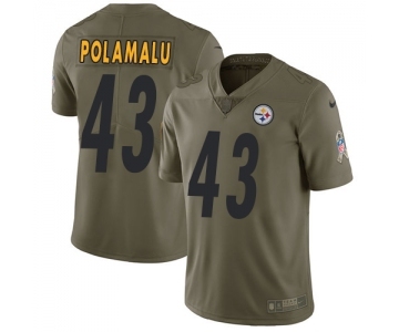 Men's Pittsburgh Steelers #43 Troy Polamalu Limited Olive 2017 Salute to Service Football Jersey