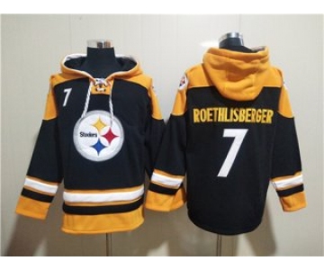 Men's Pittsburgh Steelers #7 Ben Roethlisberger Black Ageless Must-Have Lace-Up Pullover Hoodie
