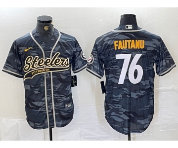 Your Position: Home>NIKE NFL Jerseys>Nike Pittsburgh Steelers>Limited Jerseys>Men's Pittsburgh Steelers #76 Troy Fautanu Grey Camo With Patch Cool Base Stitched Baseball Jersey