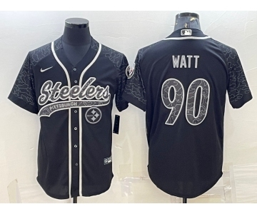 Men's Pittsburgh Steelers #90 TJ Watt Black Reflective With Patch Cool Base Stitched Baseball Jersey