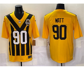 Men's Pittsburgh Steelers #90 T.J. Watt Gold 1933 Throwback Alternate Football Stitched Game Jersey